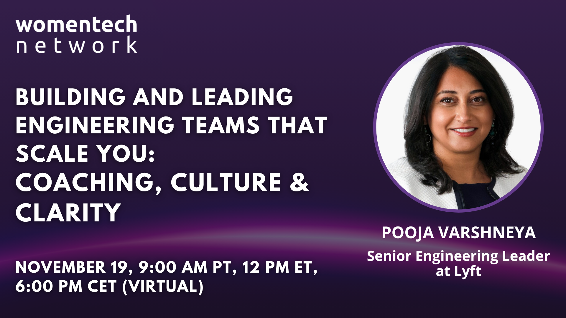 We’re thrilled to announce Pooja Varshneya, Senior Engineering Manager at Lyft and an Executive Member at WomenTech Network, as our featured guest speaker this month.