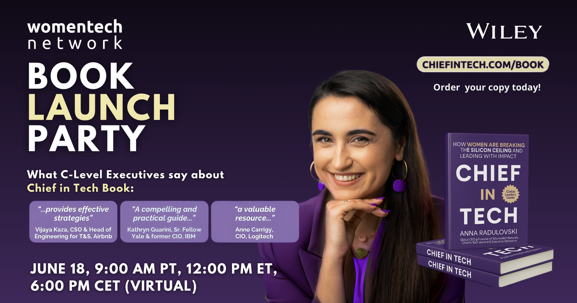 Join us for the virtual launch party of Chief in Tech, a groundbreaking book by Anna Radulovski, Founder & Global CEO of WomenTech Network! This is your chance to connect with Anna, dive into the inspiration behind the book, and explore the key themes that are shaping the future of women in tech leadership.