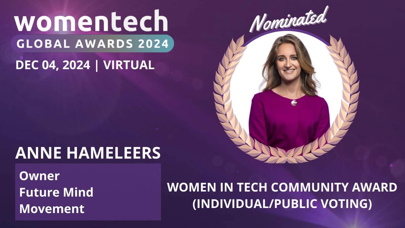 Here are the instructions on promoting your nomination for the Women in Tech Global Awards: