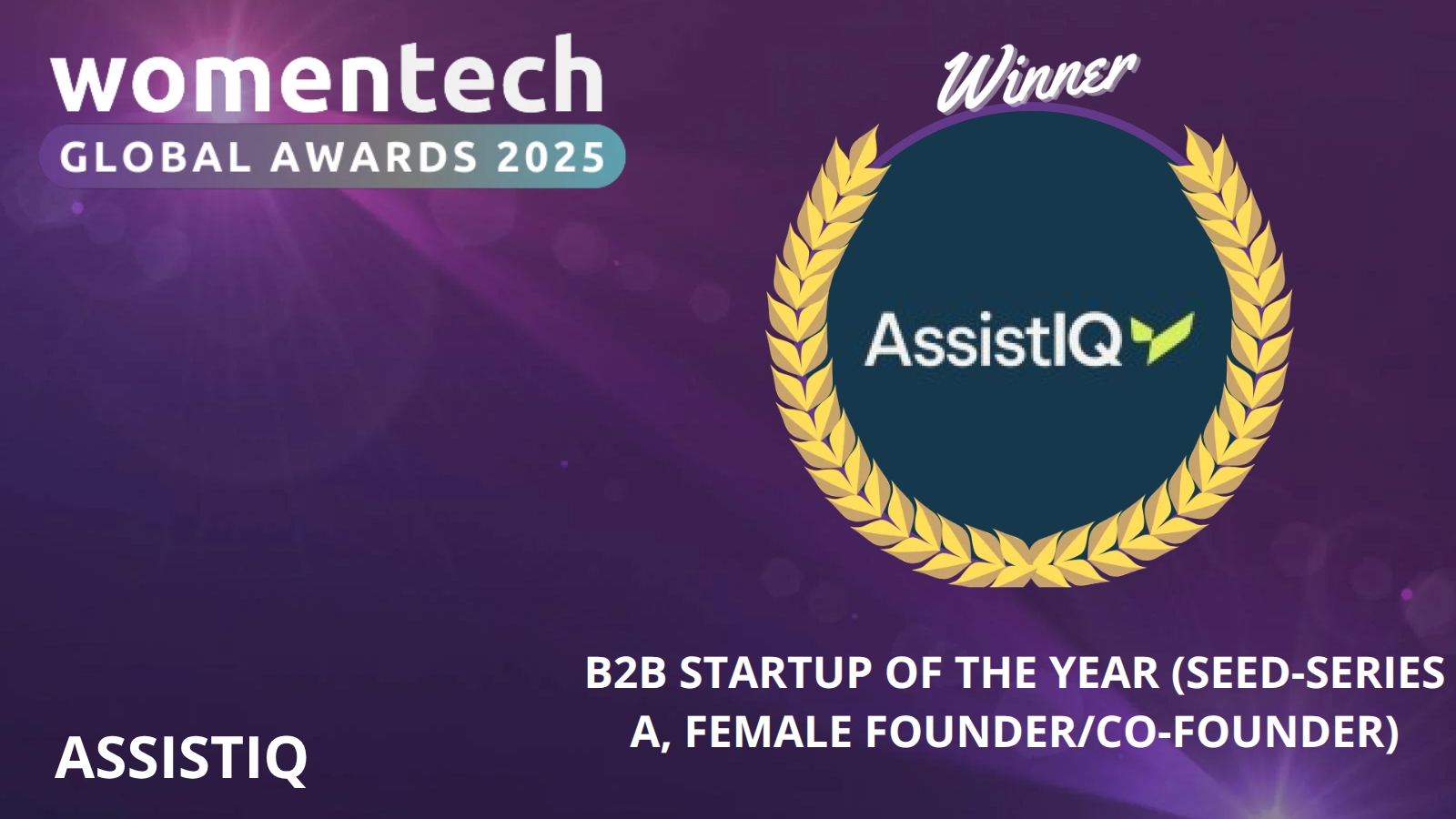 • B2B Startup of the Year (Seed–Series A, Female Founder/Co-Founder)