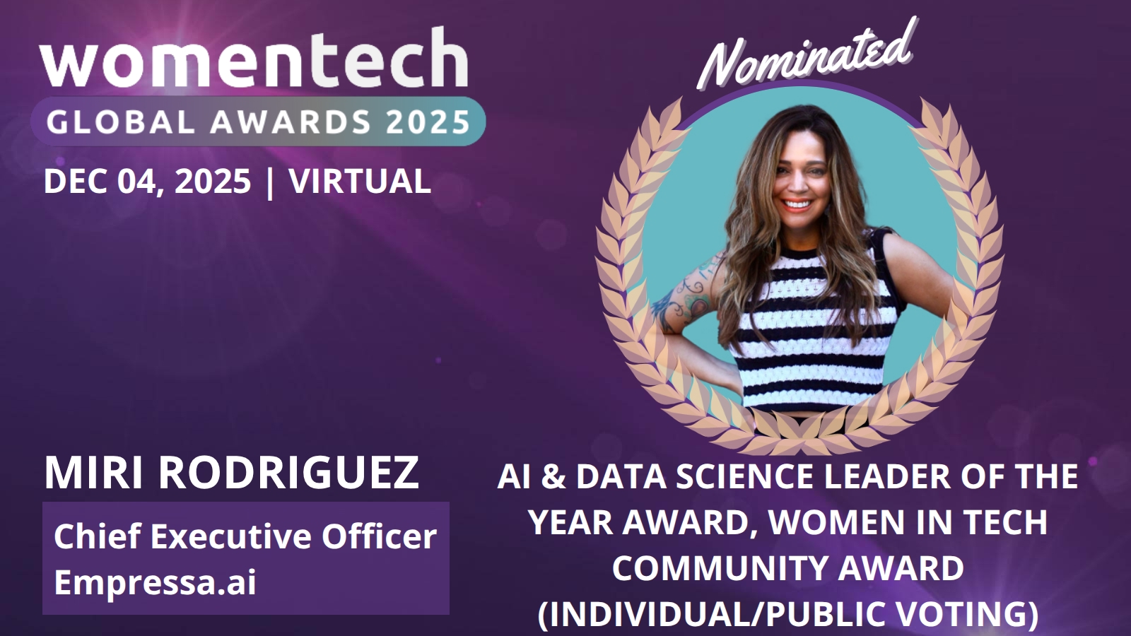 AI & Data Science Leader of the Year Award, Women in Tech Community Award (Individual/Public Voting)