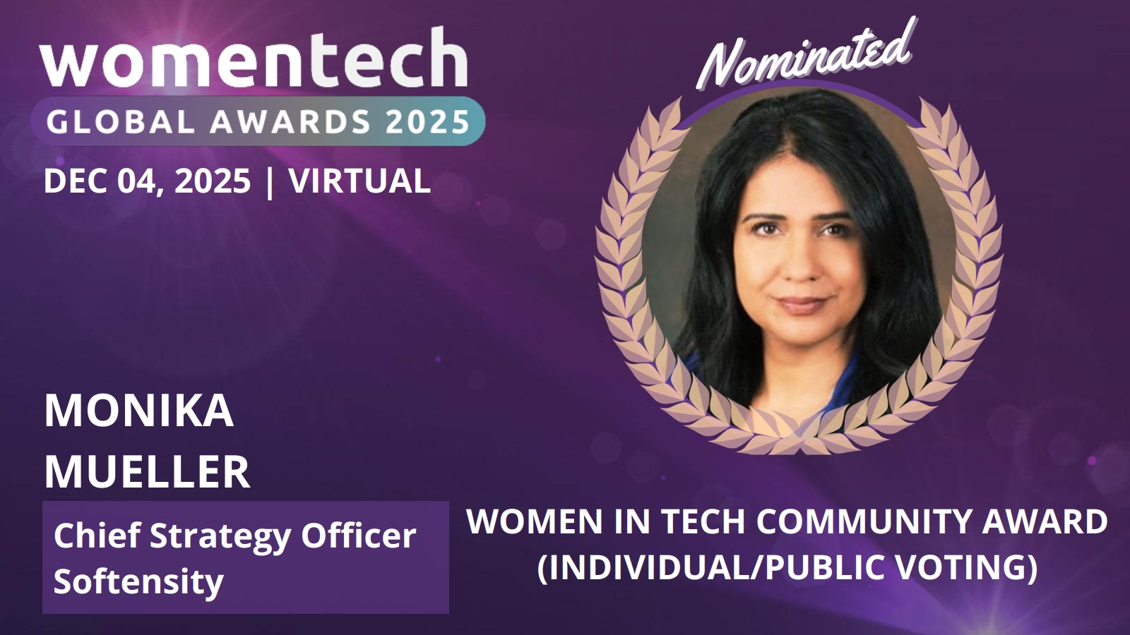 Help raise awareness. Nominees with the most votes are eligible for the WomenTech Community Award.
