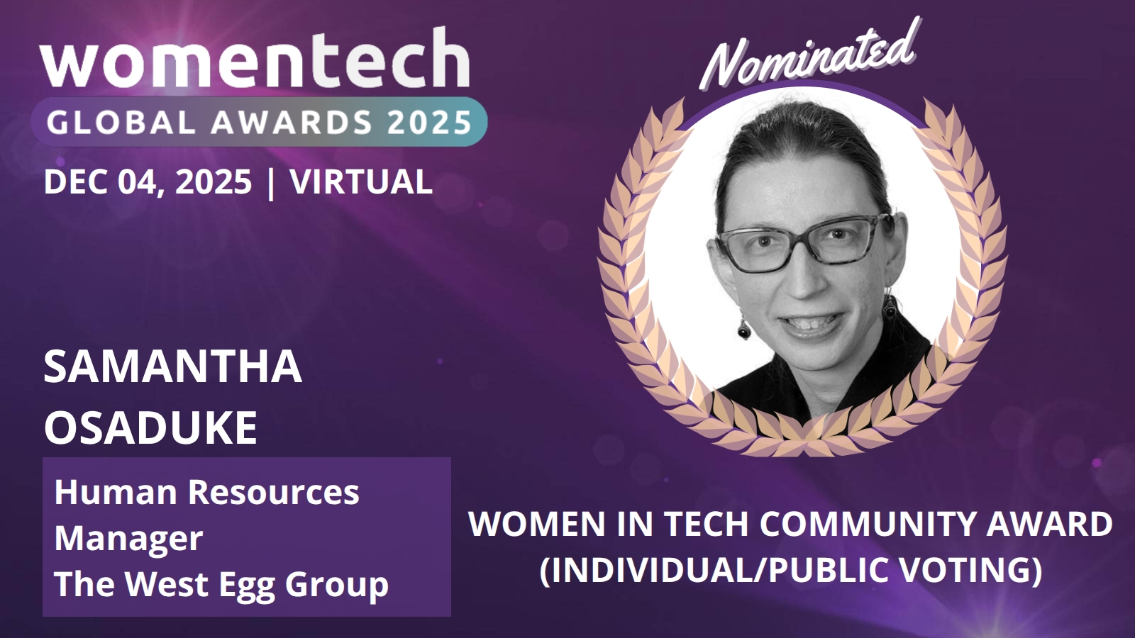 Here are the instructions on promoting your nomination for the Women in Tech Global Awards: