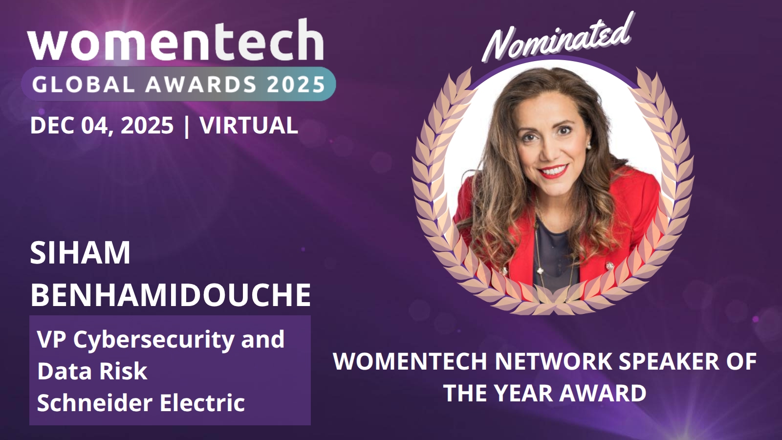 Siham Benhamidouche is VP of Cybersecurity and Data Risk at Schneider Electric with over 18 years of experience shaping enterprise cyber strategy. A sought-after speaker, she champions cybersecurity as a driver of innovation, resilience, and trust in the digital age.