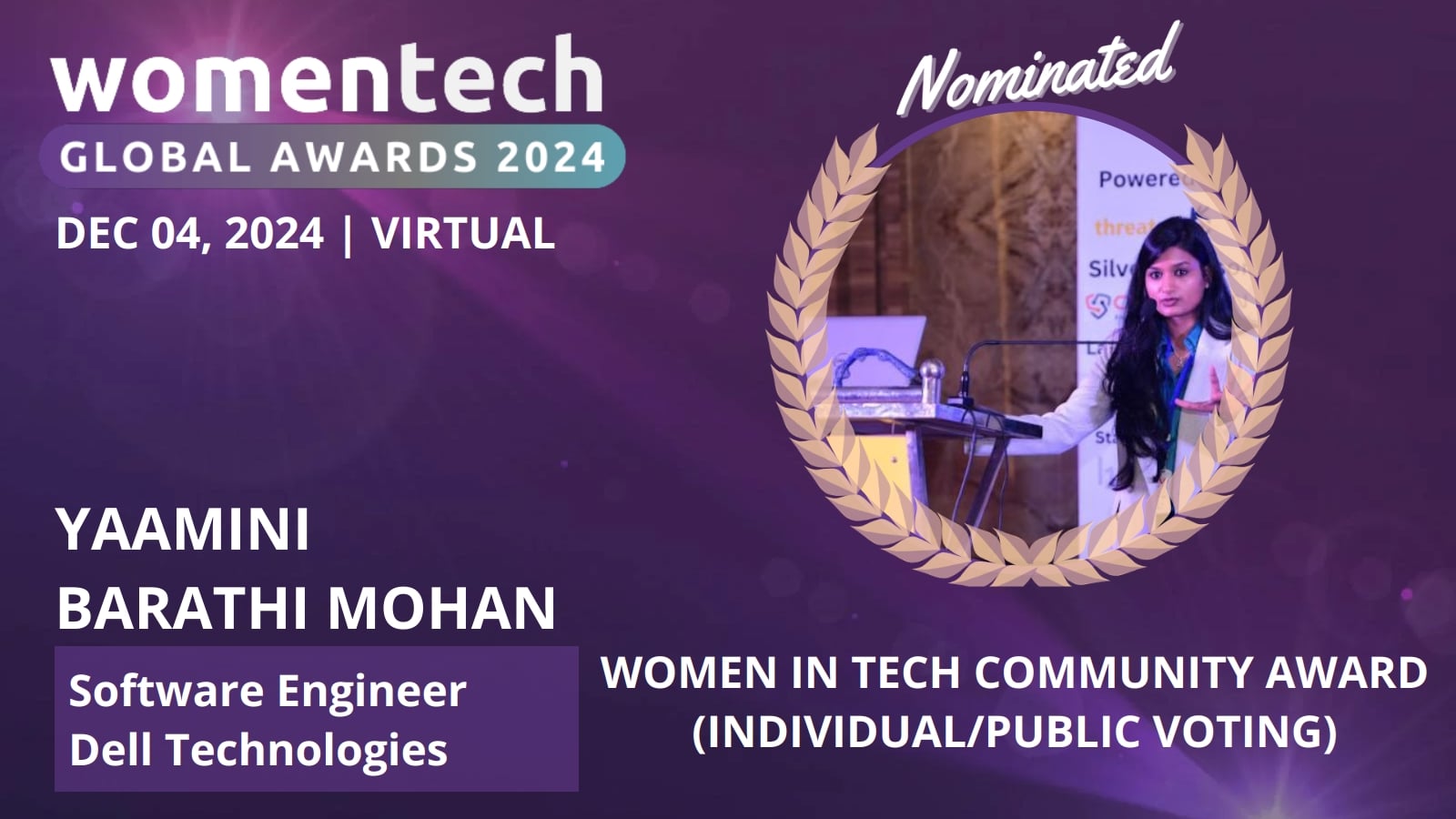 Thank you for participating in the Women in Tech Global Awards and supporting women in tech. Your vote helps to recognize and celebrate their significant contributions to the field.