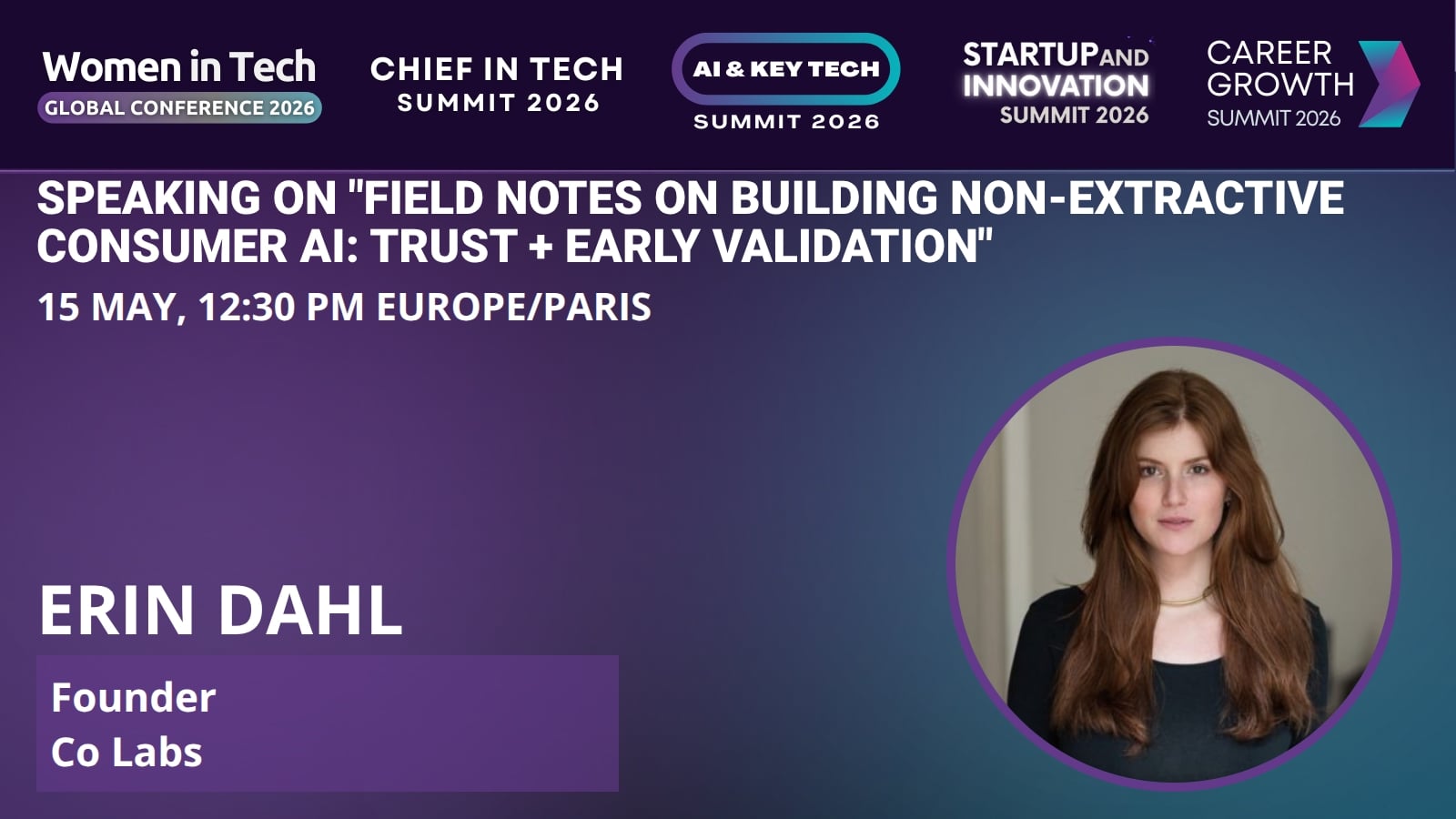 Erin Dahl is the Founder of Co Labs, a relational intelligence consumer AI company. We're currently developing our first tool: an app that nurtures the human relationships that shape daily life. It's privacy-aware and consent-led, with a focus on outcomes beyond the screen, like clearer understanding, healthier interaction patterns, and deeper real-world connection. Erin works at the intersection of product, AI behavior, and trust, with an emphasis on building systems that are useful without being extractive.