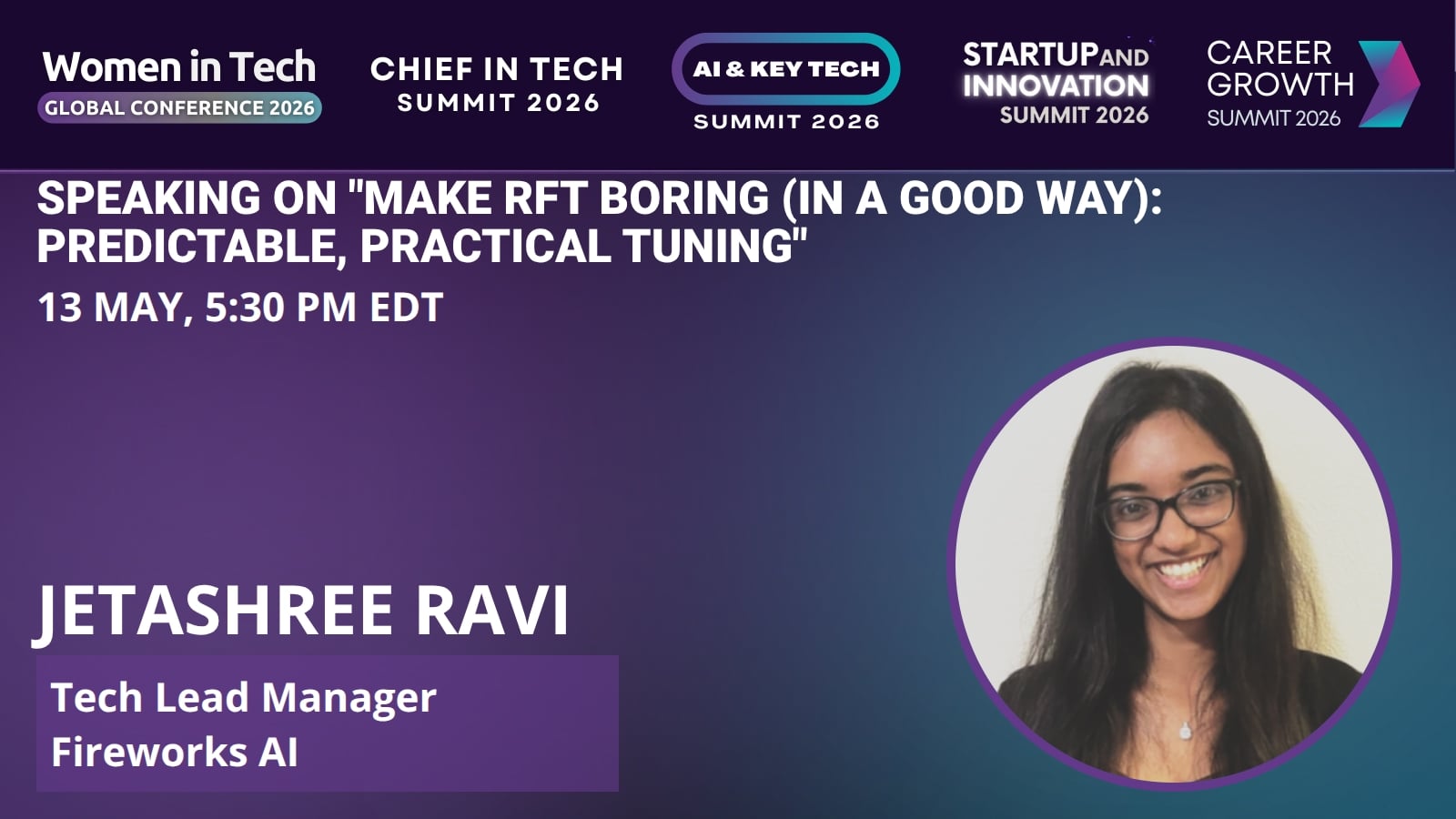Jetashree Ravi is a Tech Lead Manager at Fireworks AI, where she leads a team of applied machine learning engineers building production-grade AI systems for companies including Figma, Uber, Cognition, and Sentient Foundation. Her work focuses on large language models, high-performance GPU inference, and developer platforms that make enterprise AI reliable at scale. She is also a co-author of FIREBENCH and an active member of the AI builder community, where she organizes and judges hackathons.