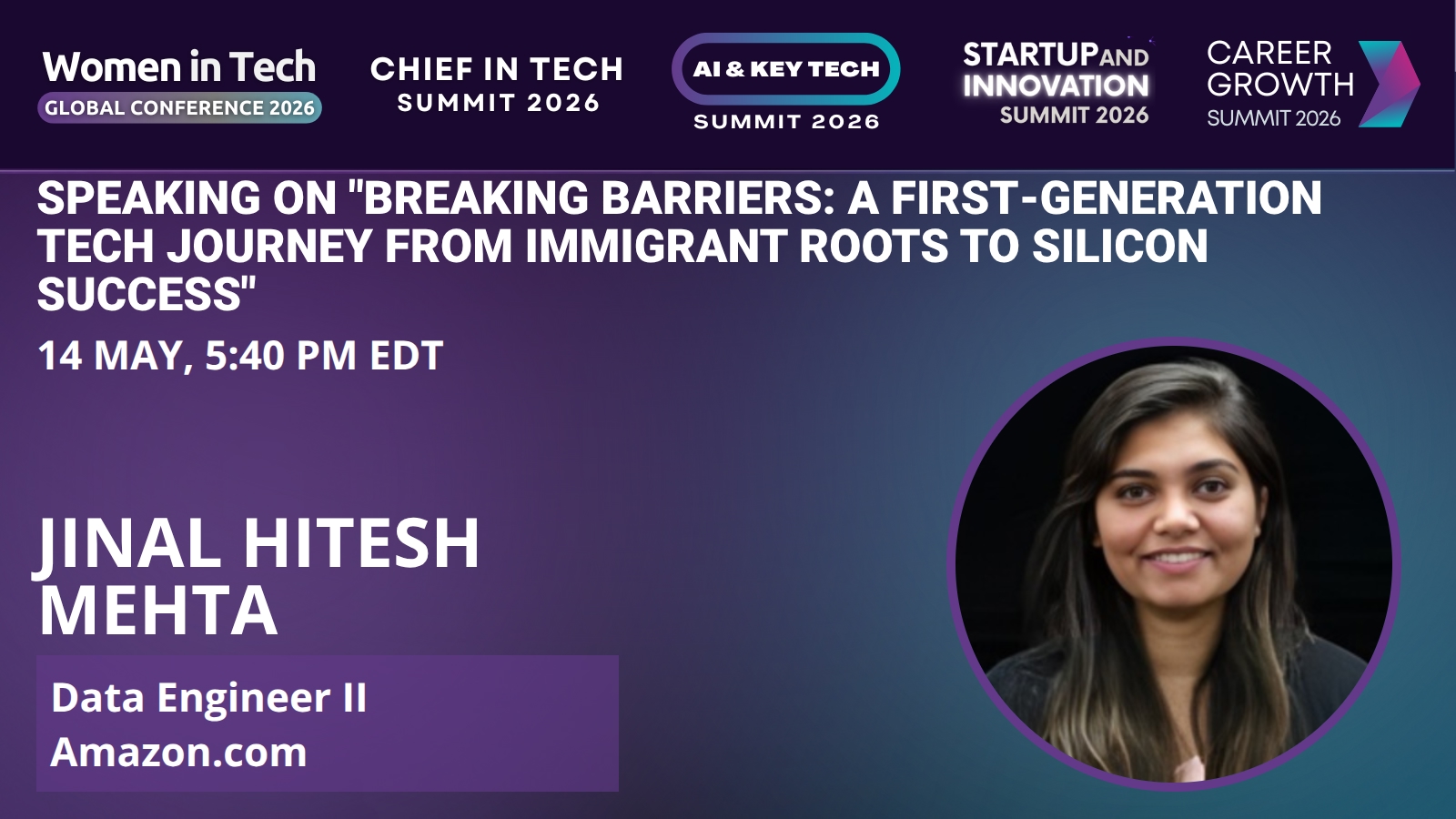 A seasoned Data Engineer with 8+ years of experience spanning three countries, Jinal brings a unique global perspective to the tech industry. Currently based in Seattle as a Data Engineer at Amazon, her journey from India through Canada to the United States embodies the quintessential first-generation tech professional's story of determination and adaptability.