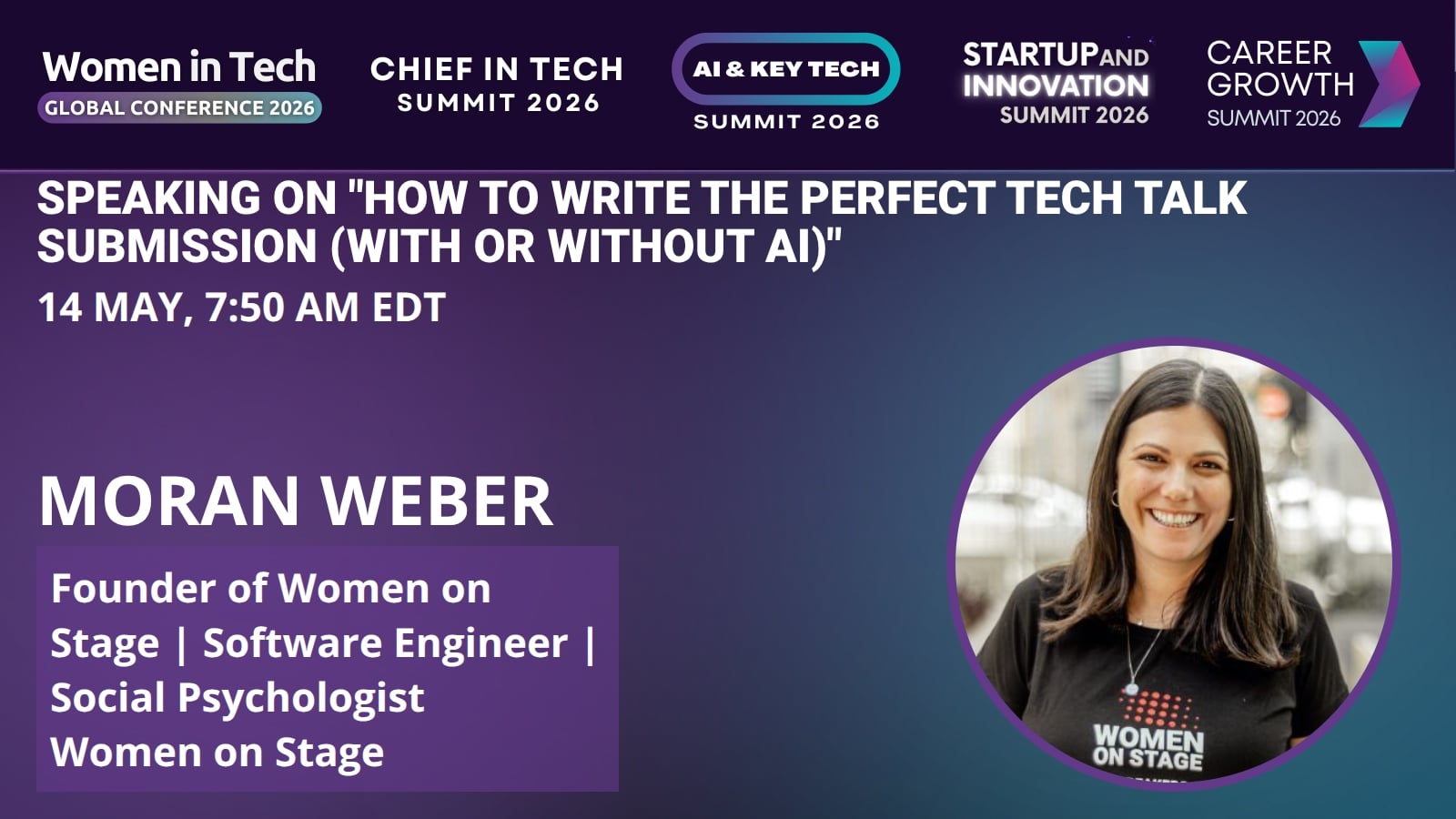 Moran Weber is an entrepreneur, speaker, and the Founder of Women on Stage, a public speaking training platform amplifying women’s voices and helping tech professionals share their expertise with confidence. Formerly a Tech Lead at Wix, she has over a decade of experience in software development and holds an MA in Social Psychology, along with a BSc in Computer Science and Psychology.