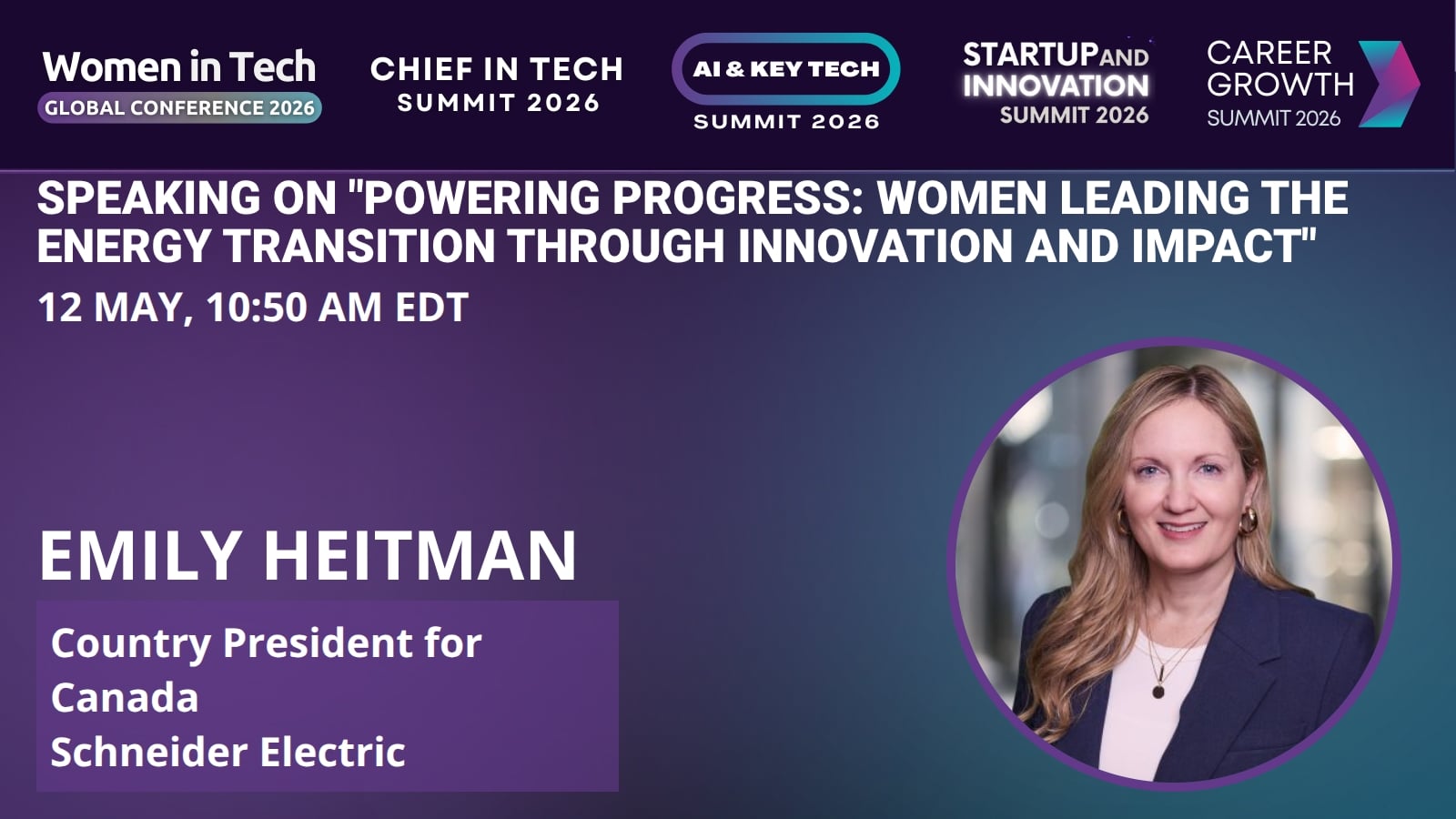 As the global energy landscape undergoes rapid transformation, women are driving innovation, sustainability, and inclusive growth across industries. In this session, Emily Heitman, President of Schneider Electric Canada, shares her journey from engineering to executive leadership, and how she’s helping shape Canada’s energy future through digitalization, decarbonization, and resilient infrastructure. Drawing from Schneider Electric’s award-winning sustainability strategy and AI-powered energy management solutions, Emily explores how women in tech can lead with purpose, build cross-sector partnerships, and deliver measurable impact in the race to net-zero. Attendees will gain insights into scaling clean technologies, navigating complex stakeholder ecosystems, and building careers that align with both climate action and business growth. This talk is designed for emerging and senior leaders passionate about energy, innovation, and equity.