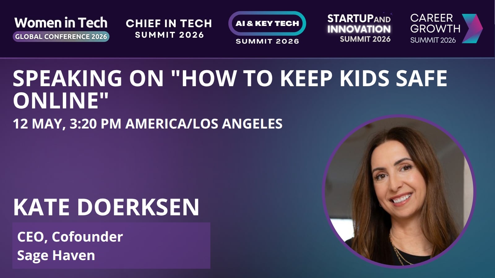 In 2023, Kate felt called back into entrepreneurship once again to start Sage Haven whose mission is to create a world where kids have a healthier relationship to technology and each other. She cofounded Sage Haven with her sister, Anne Pizzuti. They were inspired by a family who went through a mental health crisis contributed to by bullying and harmful social media content and the desire to ensure their own kids have a different experience online. In October 2024, they published a free guidebook to educate parents on technology best practices. In November 2024, they launched a weekly parenting podcast called Sage Sisters. In Q2 2025, they are launching their first technology solution, a safer messaging app for kids with AI-power safety tools for parents.. They hope to eventually layer in content and create a non-toxic alternative to social media.