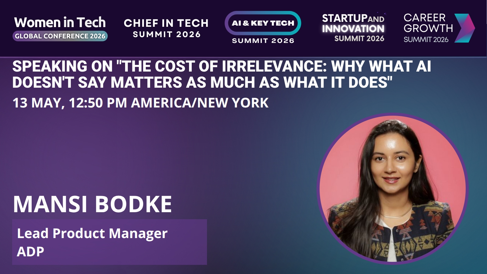 In this talk, I'll introduce the Cost of Irrelevance framework, drawn from my research and my work leading the AI agent behind ADP Assist, a conversational AI product serving millions across the U.S. workforce. I'll walk through why guardrails are not a limitation on AI. They are the design. And I'll give attendees a practical mental model for evaluating any AI product they build, buy, or advocate for: not just "can it do this?" but "should it?"